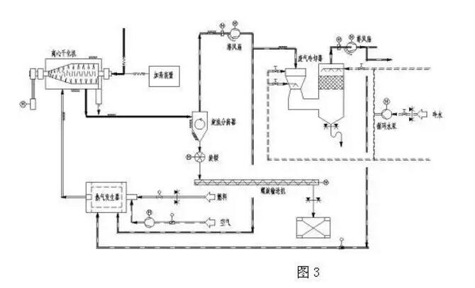 該干化系統的特點是:無返料系統,間接加熱,干燥機本身無動部件,故幾乎無需維修,但干化顆粒的粒徑無法控制。